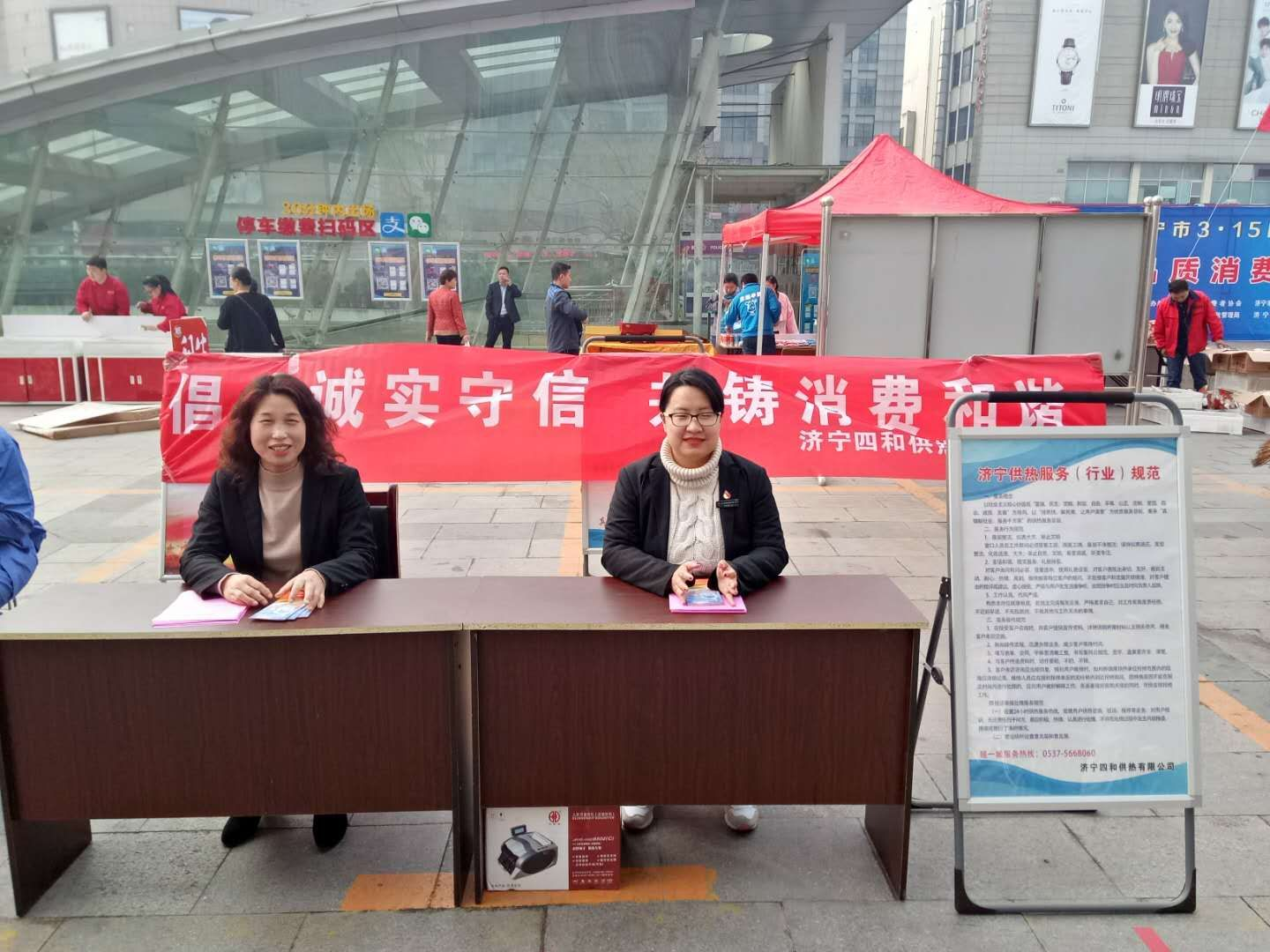 2018年3月15日,為進一步提升消費者的自我保護意識,濟寧市工商局在運河城廣場開展的3.15國際消費者權(quán)益日宣傳活動,倡導品質(zhì)消費理念,營造品質(zhì)消費氛圍,濟寧四和供熱有限公司作為唯一受邀的供熱企業(yè),積極組織多名職工參加此次活動。