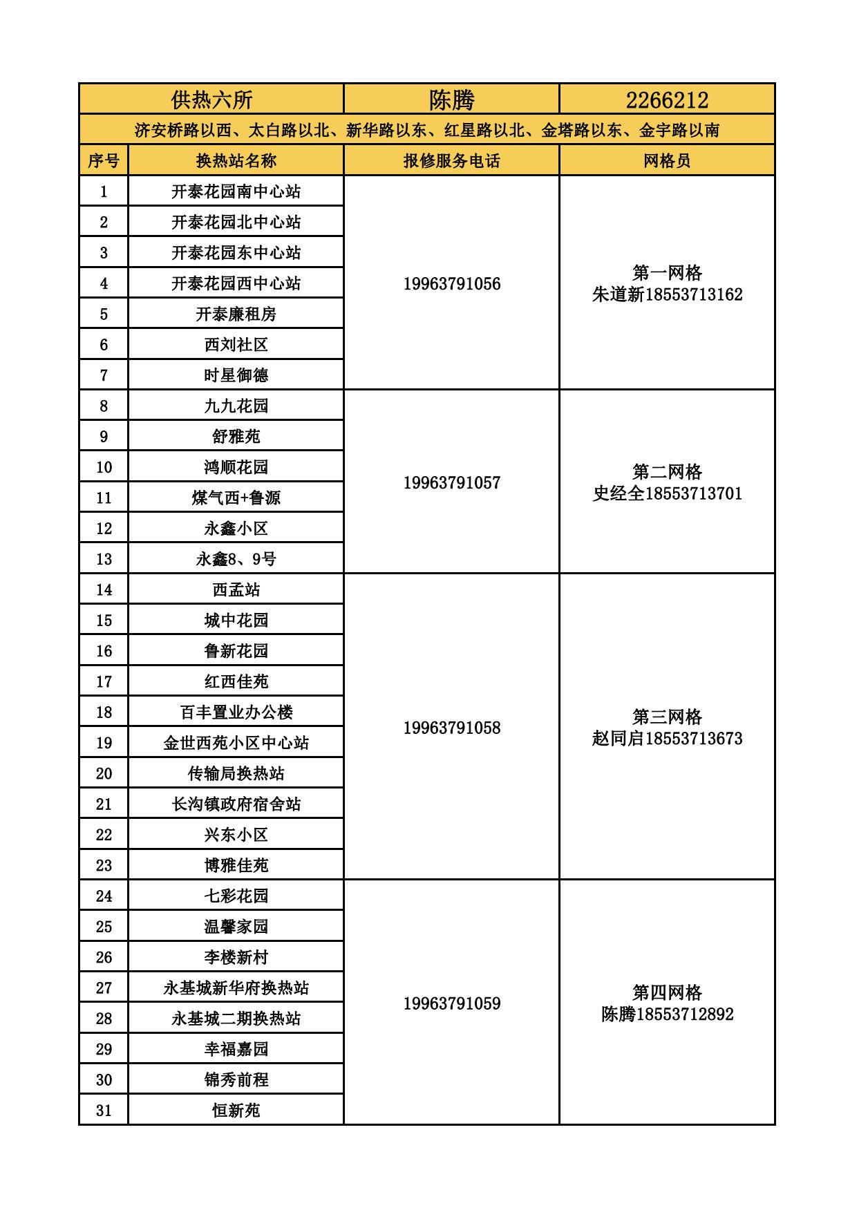 四和供熱公司各供熱服務(wù)所聯(lián)系方式及網(wǎng)格員聯(lián)系方式